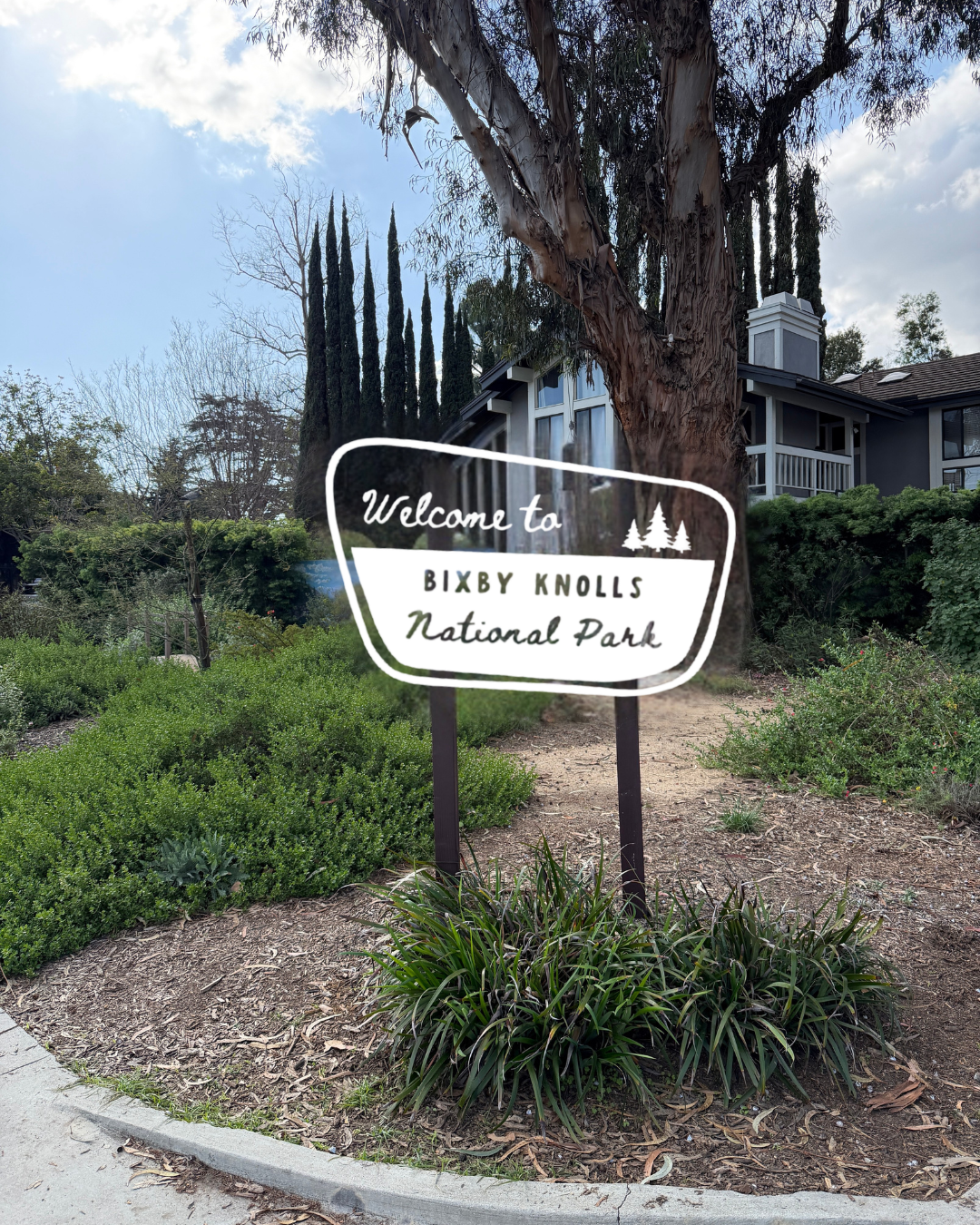 The illustrations featured on the tote were inspired by familiar sights throughout the neighborhood — the Bixby Knolls mural on Long Beach Boulevard, the iconic Angel Food Donut sign, the endless palm trees, and the playful “Bixby Knolls National Park” sign.